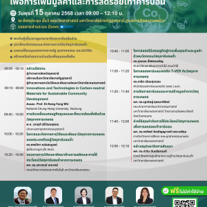 ขอเชิญเข้าร่วมการสัมมนาในหัวข้อ “นวัตกรรมและการจัดการวัสดุคาร์บอนต่ำจากการเกษตรเพื่อการเพิ่มมูลค่าและการลดรอยเท้าคาร์บอน”