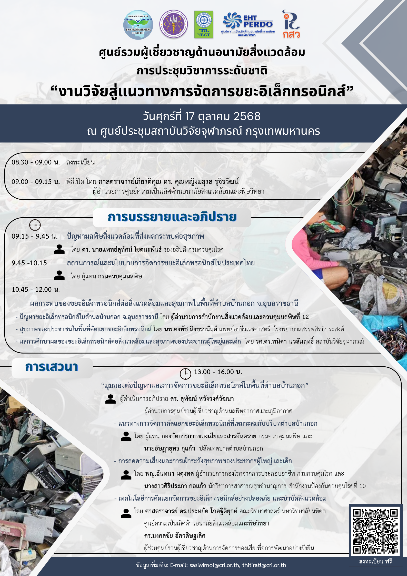 ขอเชิญผู้สนใจร่วมงานประชุมวิชาระดับชาติ เรื่อง “งานวิจัยสู่แนวทางการจัดการขยะอิเล็กทรอนิกส์”
