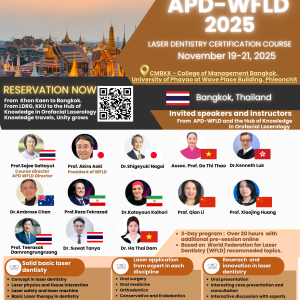 🌞Update venue of the APD WFLD 2025, Laser Dentistry Certification Course will be organized Bangkok, Thailand🌟 APD-WFLD 2025 — Laser Dentistry Certification Course 🌞Update venue of the APD WFLD 2025, Laser Dentistry Cer […] 19 - 21 พ.ย. 08:00 - 18:00 CMBKK-College of Management Bangkok University of Phayao