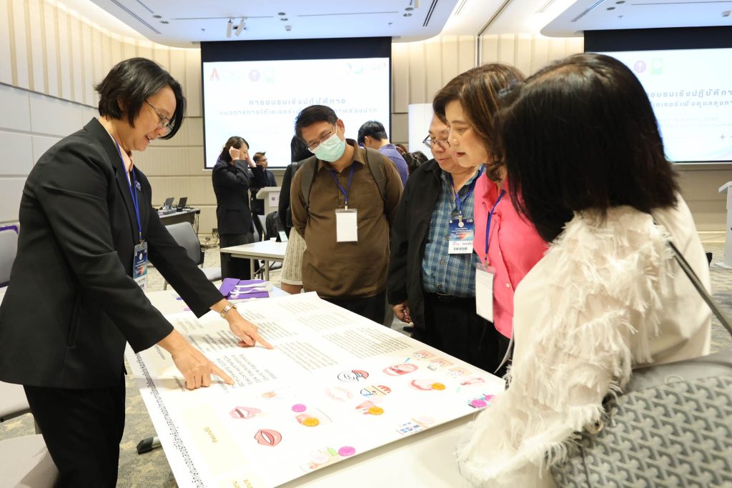 – กิจกรรม Workshop : มาตรฐานการใช้เลเซอร์เพื่อดูแลสุขภาพช่องปากอย่างปลอดภัยโดยมีการแบ่งกลุ่มศึกษา : กลุ่มละ 10 นาทีจำนวน 5 กลุ่ม ดังนี้