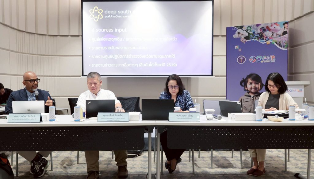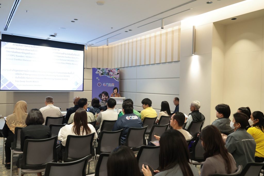 รองศาสตราจารย์ ดร.บุษบง ชัยเจริญวัฒนะ ผู้บริหารจัดการศูนย์รวมผู้เชี่ยวชาญด้านการเฝ้าระวังความรุนแรงและความขัดแย้ง (Talent Hub for Monitoring Violence and Conflict) สถาบันสันติศึกษา มหาวิทยาลัยสงขลานครินทร์ กล่าวถึงบทบาทและการดำเนินงานของศูนย์ฯ ว่า ศูนย์ฯ ได้รับทุนสนับสนุนการวิจัยจาก วช. เพื่อพัฒนาระบบฐานข้อมูลซึ่งจะช่วยสนับสนุนการตัดสินใจบนพื้นฐานของข้อมูลเพื่อลดความขัดแย้ง โดยพัฒนาจัดทำเป็นฐานข้อมูล ได้แก่ ฐานข้อมูลเฝ้าระวังสถานการณ์ภาคใต้ ฐานข้อมูลความคิดเห็นประชาชน ฐานข้อมูลเศรษฐกิจและสังคม และฐานข้อมูลงบประมาณแผ่นดิน ผ่านการบูรณาการข้อมูลจากหลายภาคส่วน เพื่อให้ประเทศไทยสามารถเฝ้าระวังและจัดการปัญหาความรุนแรงและความขัดแย้งได้อย่างมีประสิทธิภาพและยั่งยืน