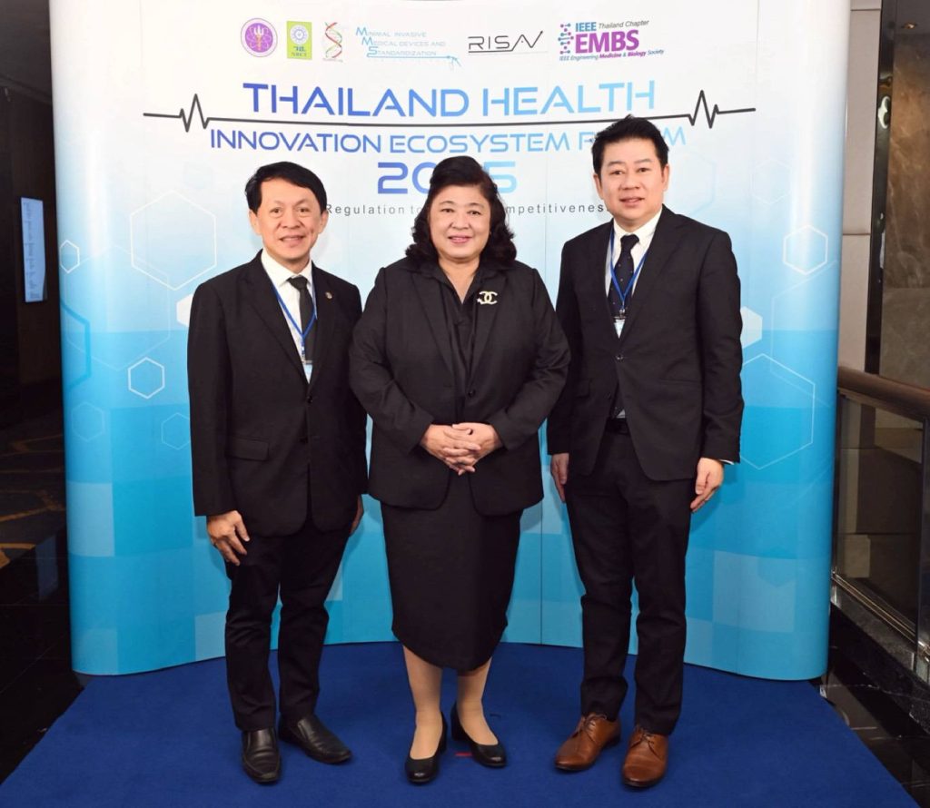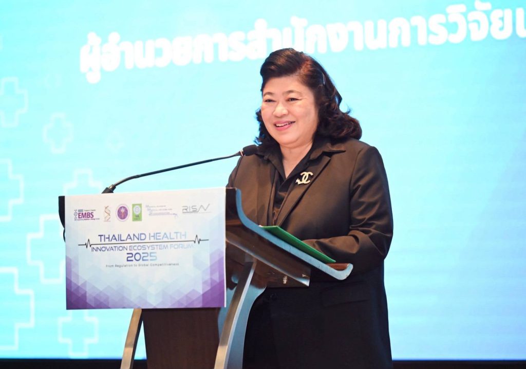 วันที่ 17 ธันวาคม 2568 สำนักงานการวิจัยแห่งชาติ(วช.) กระทรวงการอุดมศึกษา วิทยาศาสตร์ วิจัยและนวัตกรรม ร่วมกับศูนย์รวมผู้เชี่ยวชาญด้านเครื่องมือแพทย์และวัสดุการแพทย์ชนิดบุกรุกน้อย และสมาคมวิศวกรรมชีวการแพทย์ไทย จัดการสัมมนาวิชาการ “Thailand Health Innovation Ecosystem Forum 2025” โดย ดร.วิภารัตน์ ดีอ่อง ผู้อำนวยการสำนักงานการวิจัยแห่งชาติ ให้เกียรติเป็นประธานในพิธีเปิด และ รองศาสตราจารย์ ดร.อนรรฆ ขันธะชวนะ ผู้บริหารจัดการศูนย์รวมผู้เชี่ยวชาญด้านเครื่องมือแพทย์และวัสดุการแพทย์ชนิดบุกรุกน้อย กล่าวต้อนรับ พร้อมนี้ยังได้รับเกียรติจากศาสตราจารย์เกียรติคุณ ดร.นายแพทย์ประสิทธิ์ วัฒนาภา ที่ปรึกษาคณะแพทยศาสตร์ศิริราชพยาบาล เป็น Keynote Speaker มาบรรยายเรื่อง “ภูมิทัศน์การวิจัยพัฒนาเพื่อการเป็น Medical Hub of ASEAN ของประเทศไทย” ณ โรงแรมอมารี กรุงเทพมหานคร