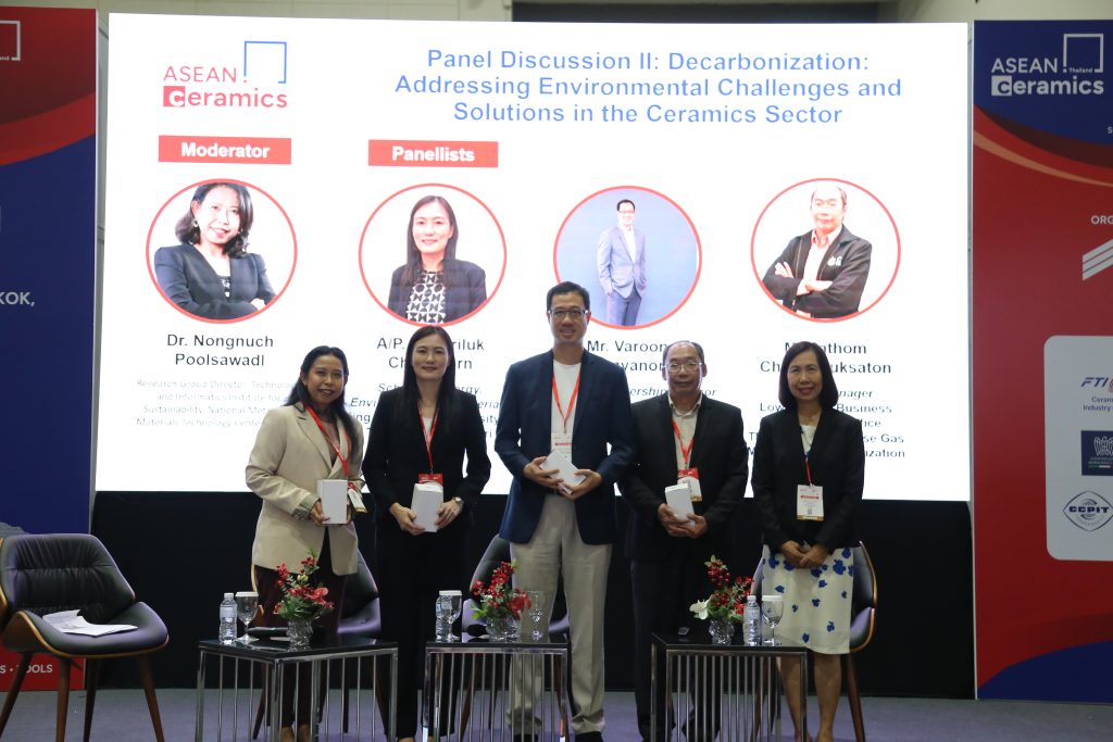 การประชุมนี้นำโดยภาควิชาวัสดุศาสตร์ คณะวิทยาศาสตร์ จุฬาลงกรณ์มหาวิทยาลัย ศูนย์เทคโนโลยีโลหะและวัสดุแห่งชาติ สำนักงานพัฒนาวิทยาศาสตร์และเทคโนโลยีแห่งชาติ และสมาคมเซรามิกส์ไทย โดยมีนักวิจัยและนักอุตสาหกรรมจากทั่วโลก โดยเฉพาะไทย จีน ญี่ปุ่น ไต้หวัน สิงคโปร์ และมาเลเซีย มาเข้าร่วมแลกเปลี่ยนความก้าวหน้าด้านเซรามิก รวมทั้งคุณวรุณ วารัญญานนท์ ที่ปรึกษาภาคีอุตสาหกรรมของศูนย์ความเป็นเลิศด้านเทคโนโลยีปิโตรเคมีและวัสดุ ที่มาร่วมอภิปรายในหัวข้อ “Decarbonization — Addressing Environmental Challenges and Solutions in the Ceramics Sector” พร้อมด้วย ผศ.ดร.สิริลักษณ์ เจียรากร คณะพลังงานสิ่งแวดล้อมและวัสดุ มหาวิทยาลัยเทคโนโลยีพระจอมเกล้าธนบุรี และ คุณปฐม ชัยพฤกษทล จากองค์การบริหารจัดการก๊าซเรือนกระจก โดยได้นำเสนอสาระความรู้ เช่น การประเมินคาร์บอนฟุตพริ้นท์ขององค์กรและคาร์บอนฟุตพริ้นท์ของผลิตภัณฑ์ รวมถึงได้แนะนำแนวทางการลดคาร์บอนฟุตพริ้นท์ในอุตสาหกรรมเซรามิก ตั้งแต่กระบวนการผลิตจนถึงตลอดวัฏจักรชีวิตของผลิตภัณฑ์ ซึ่งเป็นแนวทางขับเคลื่อนอุตสาหกรรมเซรามิกสู่ความยั่งยืน