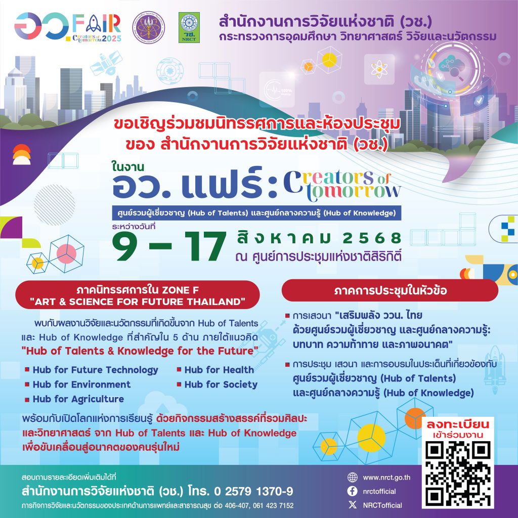 ขอเชิญร่วมชมนิทรรศการและห้องประชุม ของ วช. ในงานอว.แฟร์ 2025